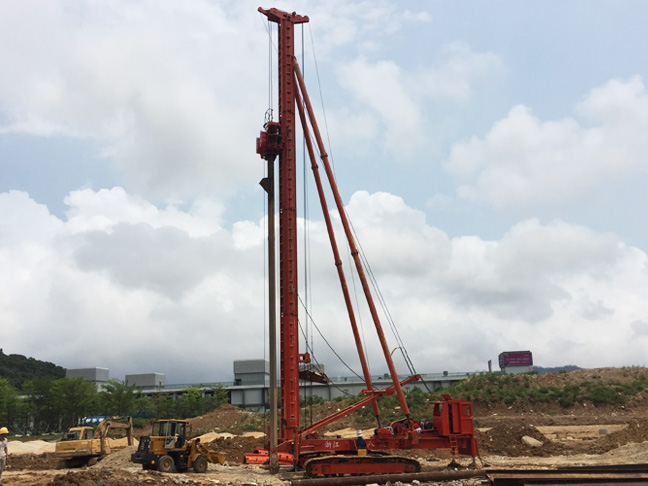 ZJL系列履帶式振動(dòng)沉管灌注樁機(jī)由電動(dòng)履帶式多功能樁架和振動(dòng)錘兩個(gè)部分組成。樁架采用電動(dòng)履帶式行走機(jī)構(gòu),自動(dòng)化程度高、可進(jìn)行正反180度回轉(zhuǎn),移位迅速、轉(zhuǎn)場(chǎng)靈活。利用振動(dòng)錘產(chǎn)生的激振力及沉樁部件自重對(duì)樁管施加壓力沉樁施工,與一般鉆孔灌注樁比,沉管灌注樁避免了一般鉆孔灌注樁樁尖浮土造成的樁身下沉,持力不足的問(wèn)題,同時(shí)也有效改善了樁身表面浮漿現(xiàn)象。